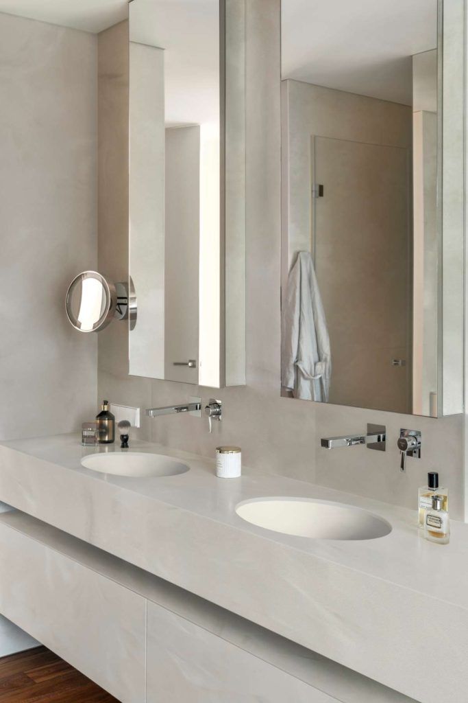 Installed as one continuous piece without visible joints, giving it an elegant look and making cleaning easier.
